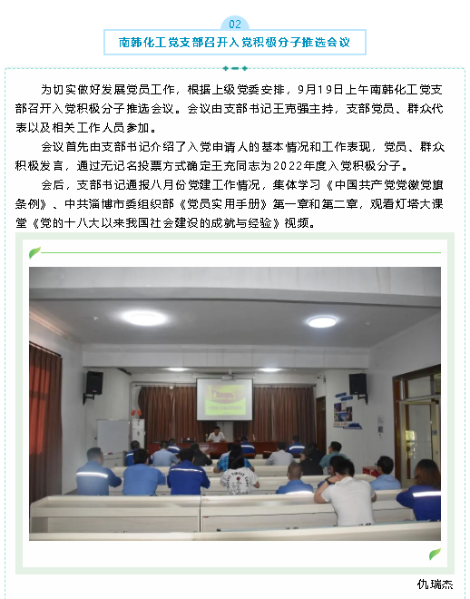 【黨建】魯中水泥黨支部召開主題黨日活動、南韓化工黨支部召開入黨積極分子推選會議