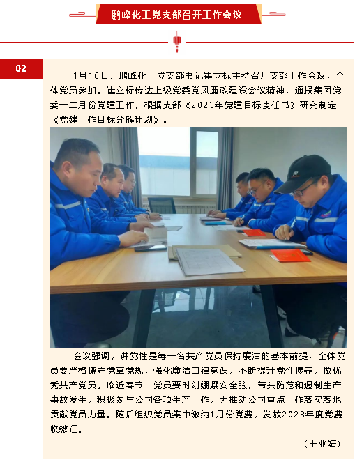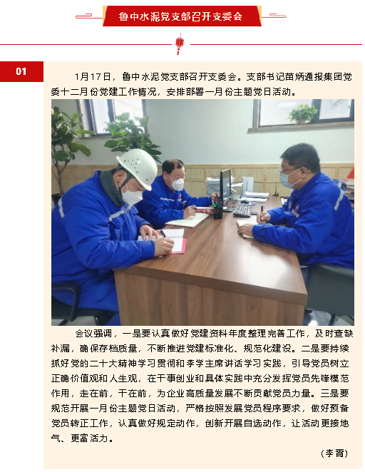 【黨建】魯中水泥黨支部召開支委會(huì)、鵬峰化工黨支部召開工作會(huì)議