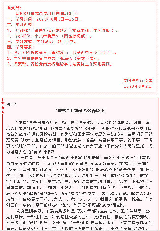 【通知】集團(tuán)黨委8月份學(xué)習(xí)通知