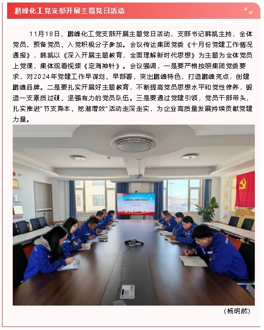 下一篇:【黨建】集團(tuán)機(jī)關(guān)黨支部召開(kāi)支委擴(kuò)大會(huì)、南韓化工黨支部開(kāi)展十一月份主題黨日活動(dòng)