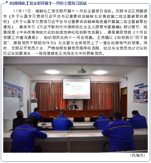【黨建】集團(tuán)機(jī)關(guān)黨支部召開支委擴(kuò)大會(huì)、南韓化工黨支部開展十一月份主題黨日活動(dòng)
